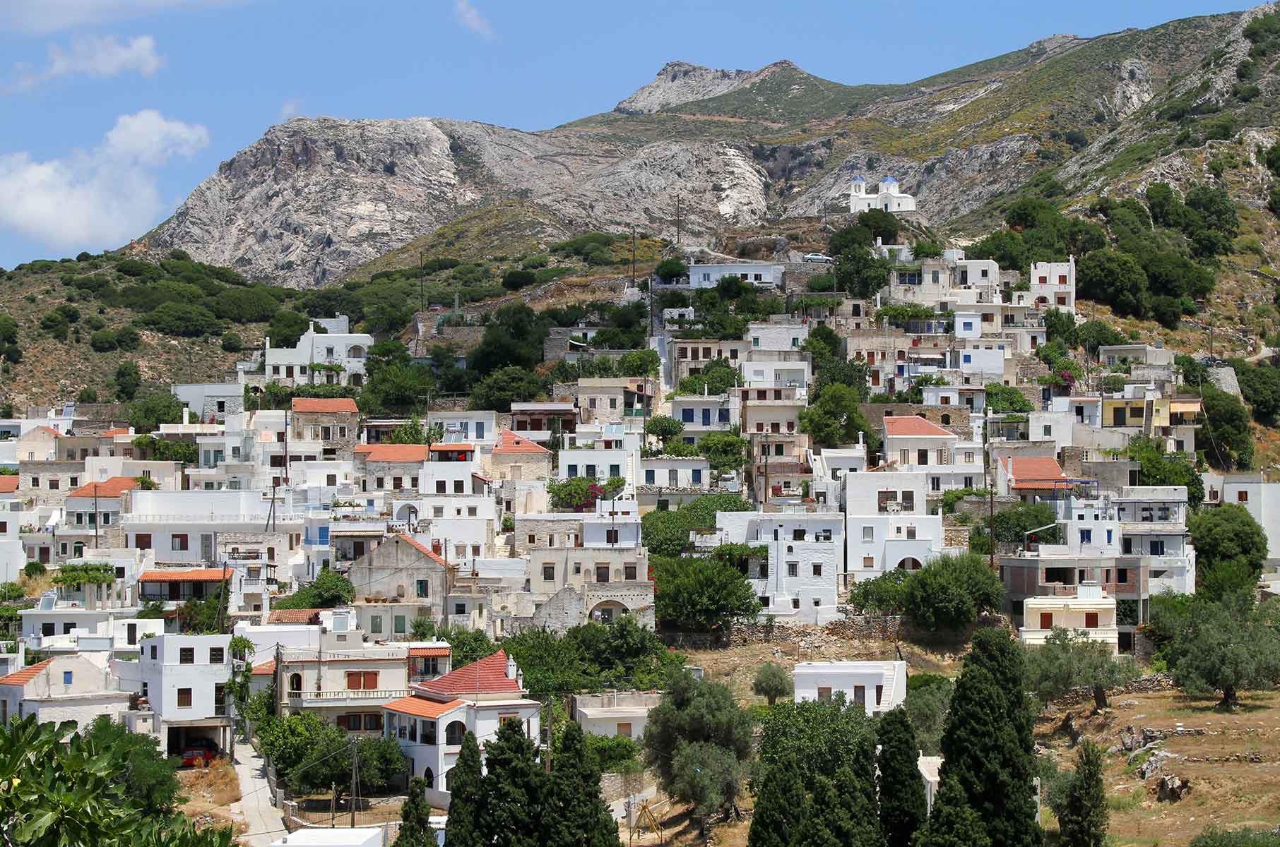 Chalki: Is located at the center of Naxos, a few minutes before Filoti village and 16km from Hora. It used to be the capital of Naxos, and its unique architecture is beyond comparison. Colorful neoclassical houses, small alleys, cozy restaurants and bars makes it the most beautiful Naxian village. Traditional and modern at the same time with Venetian Towers, Byzantine churches and picturesque small roads, which reveal the long history of the village.  Walking through a small path which guide you to Saint George church, you will have the opportunity to see the olive groves for which the area is famous for. Local transportation has often bus schedules, and if you have a car you will need 15 minutes to reach the village.