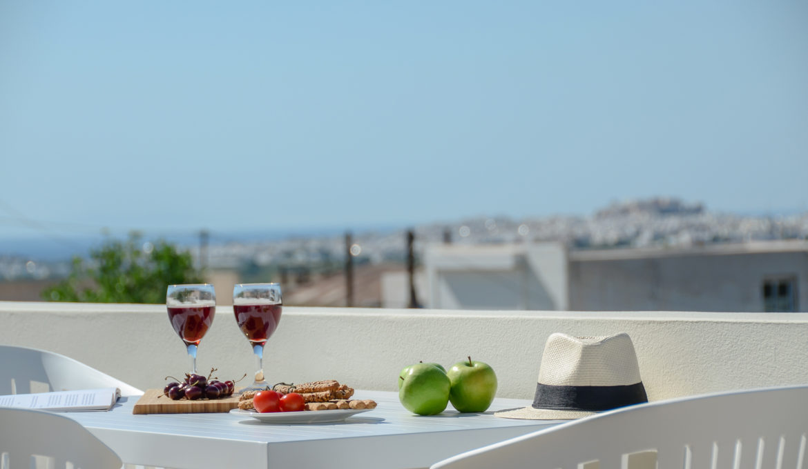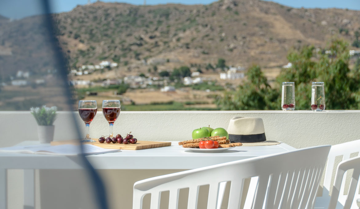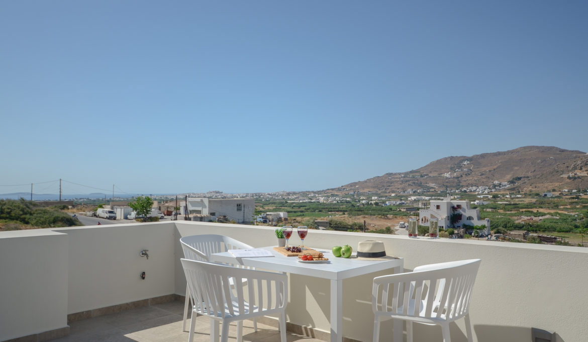 Iris was named after the homonym flower that we love really much because of its color, aesthetic and the fact that is connected with the rainbow and the state of positive mind. Stunning color shades like the sunset you will experience from the balcony of our brand new 40m2 house. Comfortable, air conditioned and quiet, it features one bedroom with a king-size bed, a spacious kitchen/living room with a sofa bed and a bathroom. The house features also a spacious terrace with fantastic view of the agricultural area around Naxos, Chora Town it self and the sea far at the horizon. Decorated with minimal touches, the house offers free Wi-Fi and private parking. The kitchen is fully equipped with cookware, utensils, refrigerator, ceramic hobs, oven, coffeemaker, Νespresso coffee machine and toast maker. There is also a flat–screen TV with satellite channels. The house is ideal for couples, families and groups of friends who want to enjoy relaxation and fresh air combined with an amazing view and tranquility.