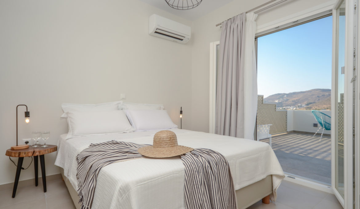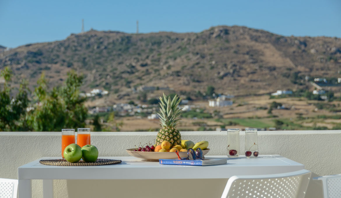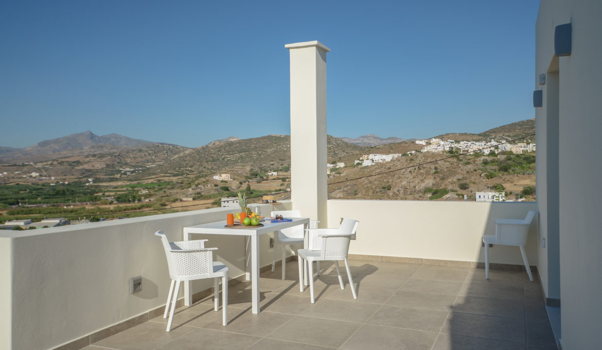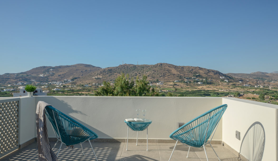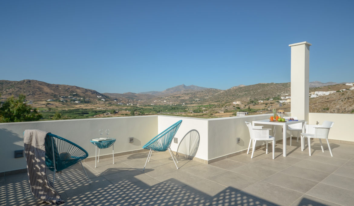 Louiza is a pharmaceutical plant with delicate blossoms, well known for its benefits to human body. Comfortable, air conditioned and quiet, this house of 40 m2 features one bedroom with a king-size bed, a spacious kitchen/living room with a sofa bed and one bathroom. It also features a spacious terrace with fantastic view of the agricultural area around Naxos, Chora Town it self and the sea far at the horizon. Due to each orientation you get the opportunity to get lost inside the colors of Naxos’ beautiful sunsets. The house combines traditional Cycladic elements with modern details and offers free Wi-Fi, private parking and flat–screen smart-TV with satellite channels. The kitchen is fully equipped with cookware, utensils, refrigerator, ceramic hobs, oven, coffeemaker, Nespresso coffee machine and toast maker. The house is ideal for couples, families and groups of friends who want to enjoy relaxation and fresh air combined with an amazing view and tranquility.