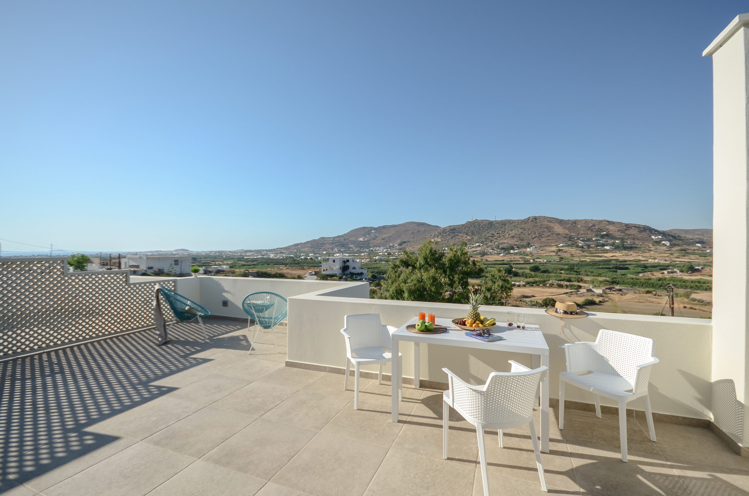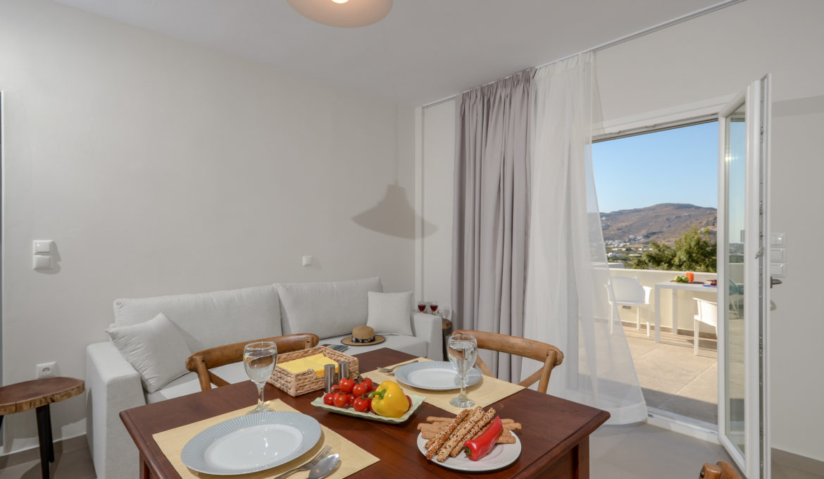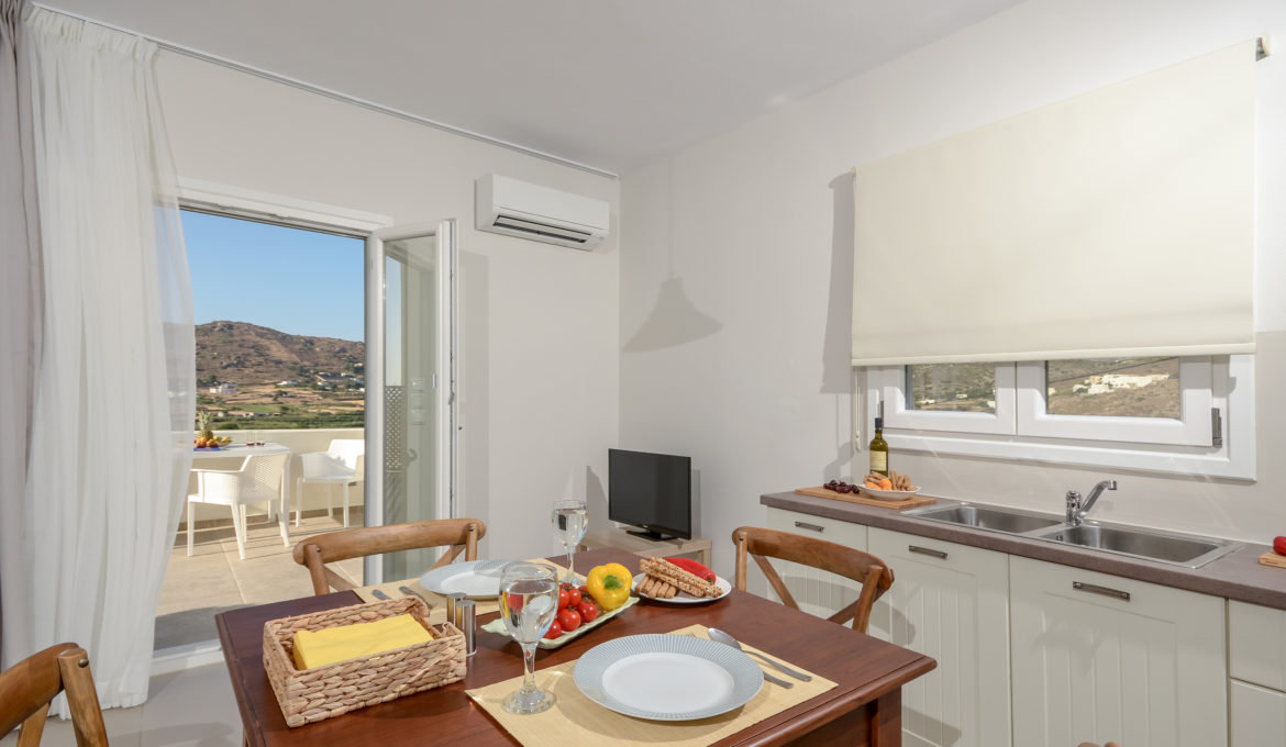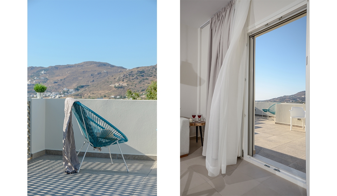 Louiza is a pharmaceutical plant with delicate blossoms, well known for its benefits to human body. Comfortable, air conditioned and quiet, this house of 40 m2 features one bedroom with a king-size bed, a spacious kitchen/living room with a sofa bed and one bathroom. It also features a spacious terrace with fantastic view of the agricultural area around Naxos, Chora Town it self and the sea far at the horizon. Due to each orientation you get the opportunity to get lost inside the colors of Naxos’ beautiful sunsets. The house combines traditional Cycladic elements with modern details and offers free Wi-Fi, private parking and flat–screen smart-TV with satellite channels. The kitchen is fully equipped with cookware, utensils, refrigerator, ceramic hobs, oven, coffeemaker, Nespresso coffee machine and toast maker. The house is ideal for couples, families and groups of friends who want to enjoy relaxation and fresh air combined with an amazing view and tranquility.