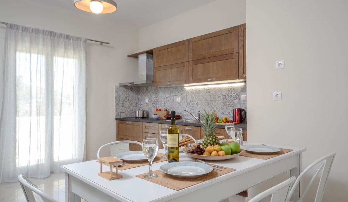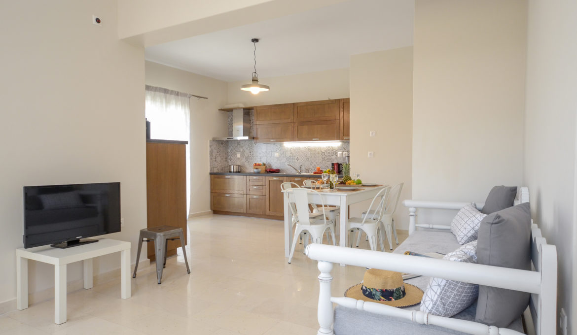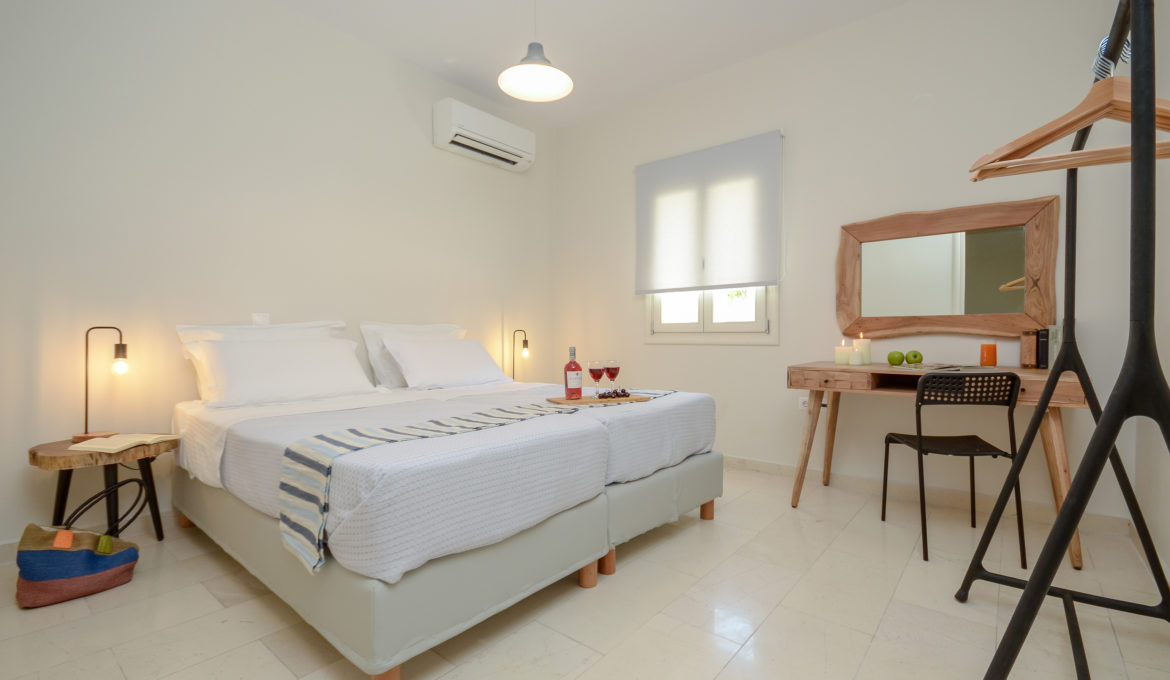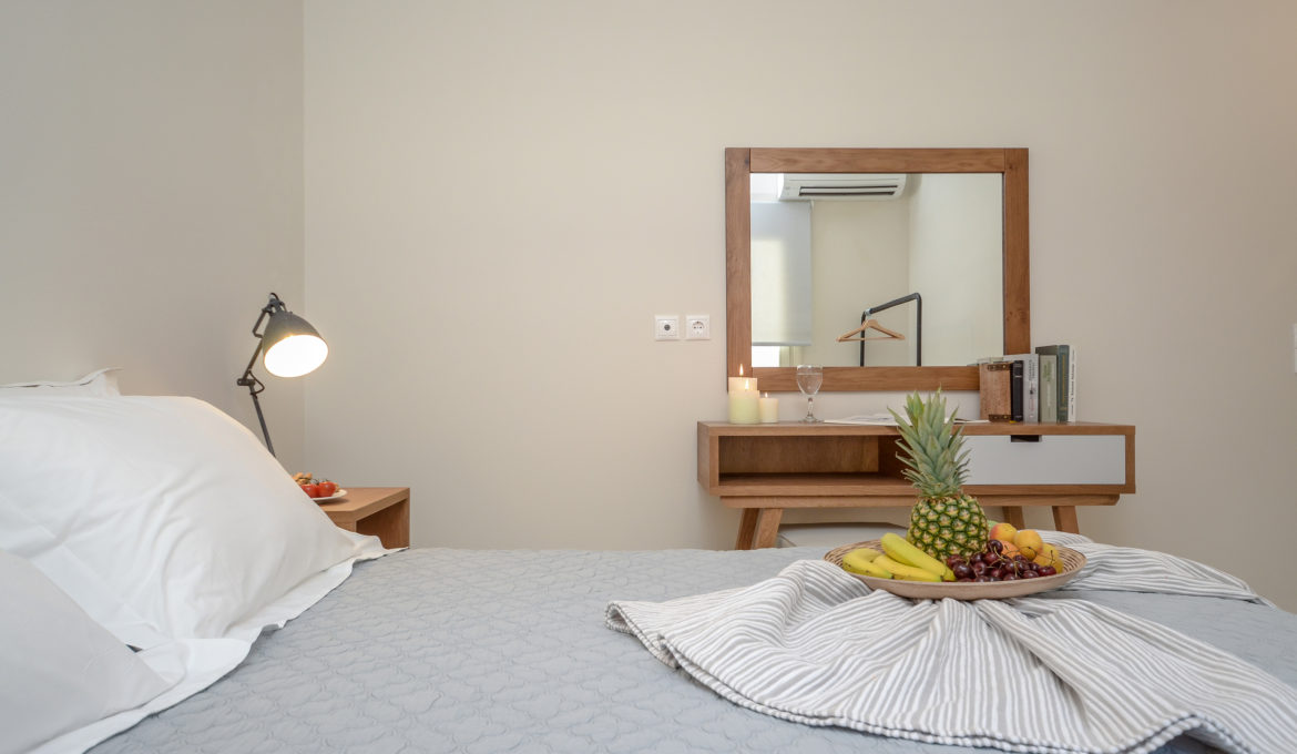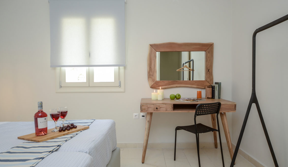 The love we have, as a family, to nature made as name our houses after our favorite flowers. Yasemi derives from the Persian Yasameen which means ‘God’s gift’. It is our biggest house (80m2), brand new, spacious and quiet. Decorated in minimal and elegant touches, it is ideal for families, couples and groups of friends who want to enjoy relaxation and revitalization. The house has two bedrooms, one with a king size bed and one with a twins bed, two bathrooms, a large living room with a sofa bed, a fully equipped kitchen and two balconies. The kitchen is fully equipped with cookware utensils, refrigerator, ceramic hobs, oven, coffeemaker, Nespresso coffee machine, toast maker. Free WiFi, flat–screen smart-TV with satellite channels and private parking area also provided.  The astonishing view from our balcony will give you the opportunity to get lost inside the colors of Naxos’ beautiful sunsets.
